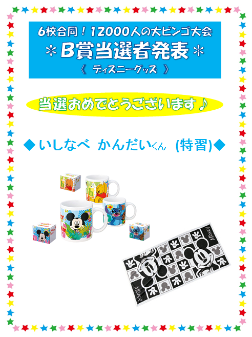 ビンゴ大会 B賞当選者発表