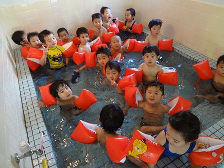 最初は泣いていた子もプールに入ったら元気に遊ぶことができたので