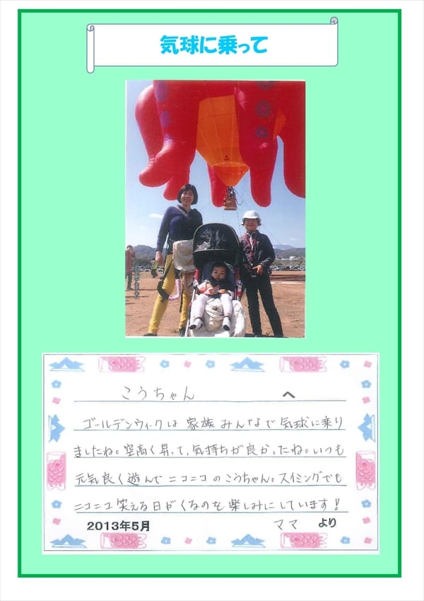 プールでも“気球のまねっこ”遊びをして、ふゎふゎ〜ってしたら気球に乗ったのを思い出してニコニコ笑顔を見せてくれるかなぁ・・・