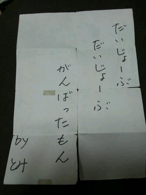 ビックリでした。私はその日、その大会に行けなかったので「頑張れ!」という気持ちで書いたのですが、まさかこんなに大切にされているなんて。