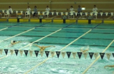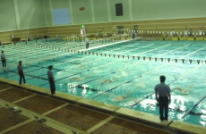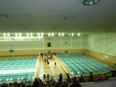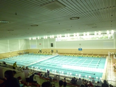 私たちが泳ぐプールはこんな立派な所です!選手の大会でもお馴染みなので、私たちも選手になった気分でした。