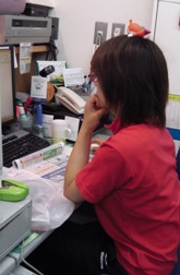 フロントに来客が増える中、どこかいつもと違う小林さん。