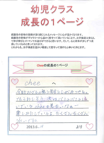 幼児クラス 成長の1ページ