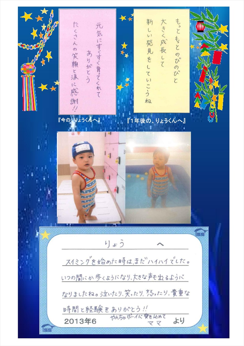 これからも、いろんな事をいっぱいしてりょうちゃんもママも新しい発見をいっぱいできるように先生もお手伝いさせて下さい。