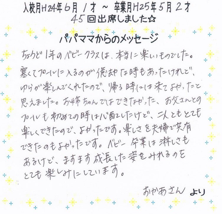 【ベビークラス卒業メッセージ】NO.8ゆらちゃん