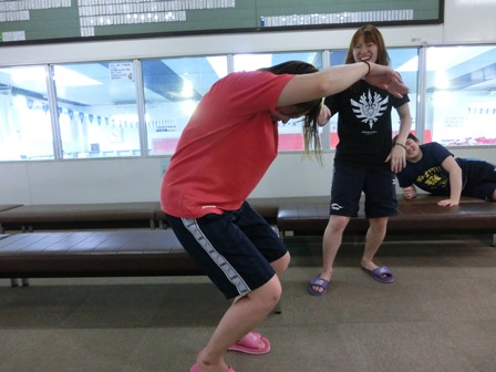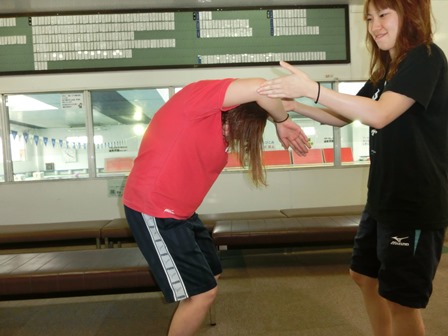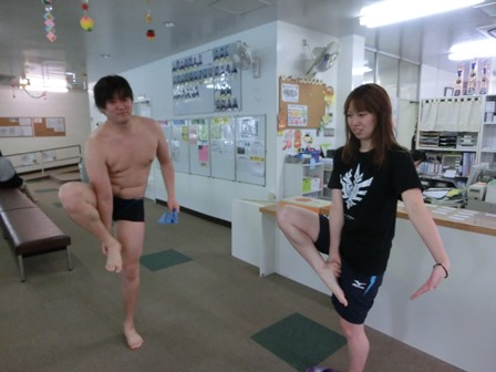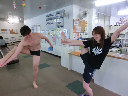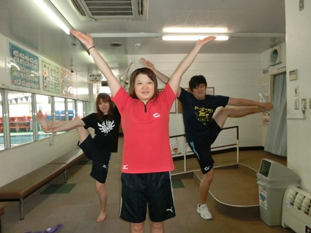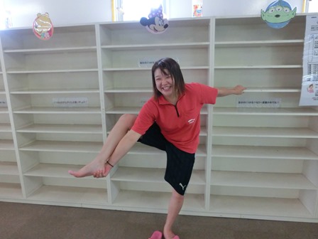 佐竹先生と高橋先生に「Y字バランスできるー?」と聞いてみると