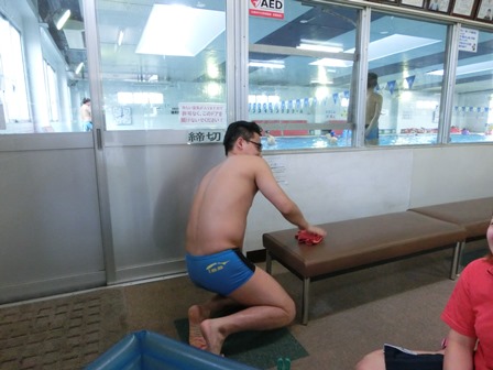※飛び散った水を「なんやねんっ!!」と言いながらきれいに掃除する岩濱先生。