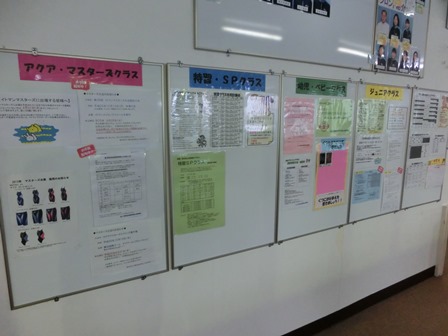 ギャラリーにある掲示板は、毎回チェックされていますか?・現在配布しているお手紙・子どもクラス振替授業の方法について・イトマンカレンダー・コーチ担当表・マスターズクラス 大会情報 などなど・・・とーっても大切な掲示物がたくさん貼ってあります★イトマンにご来館された際は、必ずチェックしていただきますようお願いいたします。