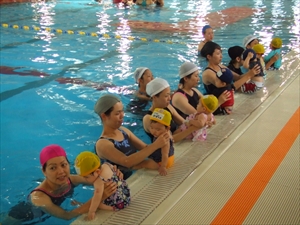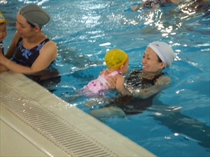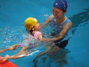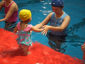 これを焦らず繰り返し行うことで、ベビーにとって “ 飛びつき ” は楽しい遊びとなり自然に水慣れが進んでいきます。