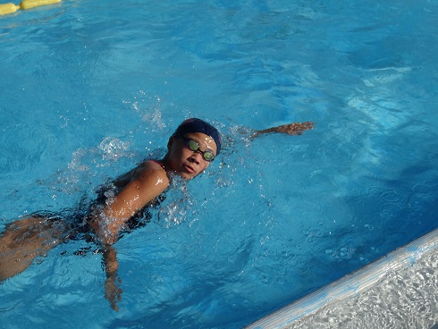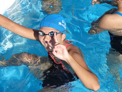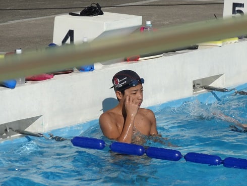 長水路のプールを借りて練習です。