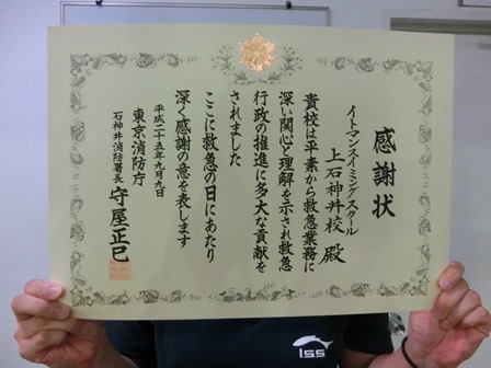 その貢献が認められ、石神井消防署に感謝状をいただきました★★