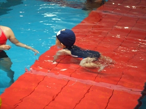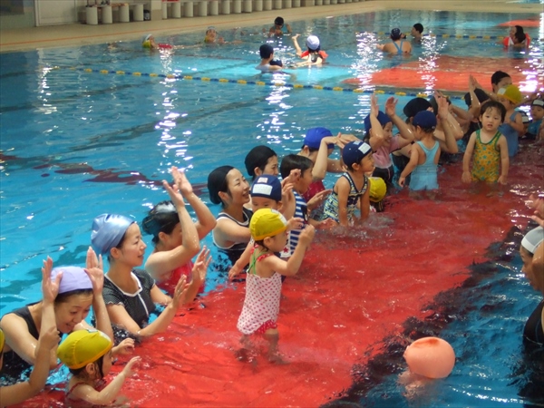 水の中をスイスイ泳ぐ “イルカ ” をイメージして水に浮いたり潜ったりする練習