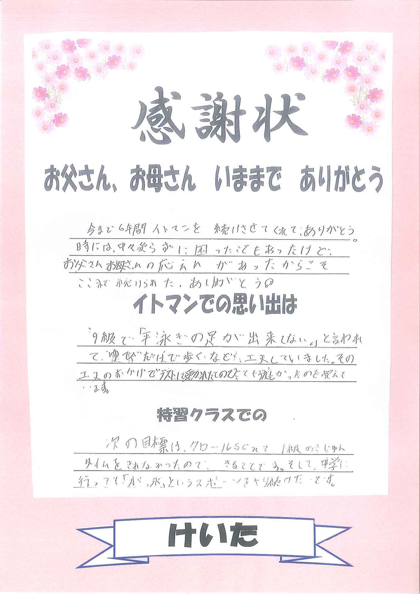 けいたの感謝状