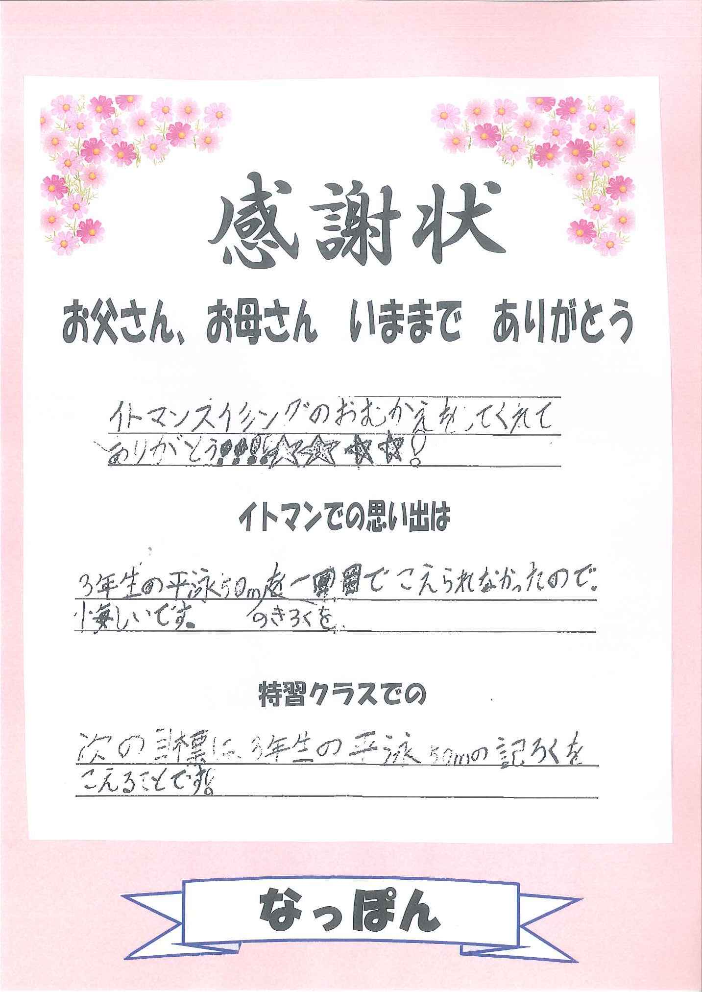 なっぽんの感謝状