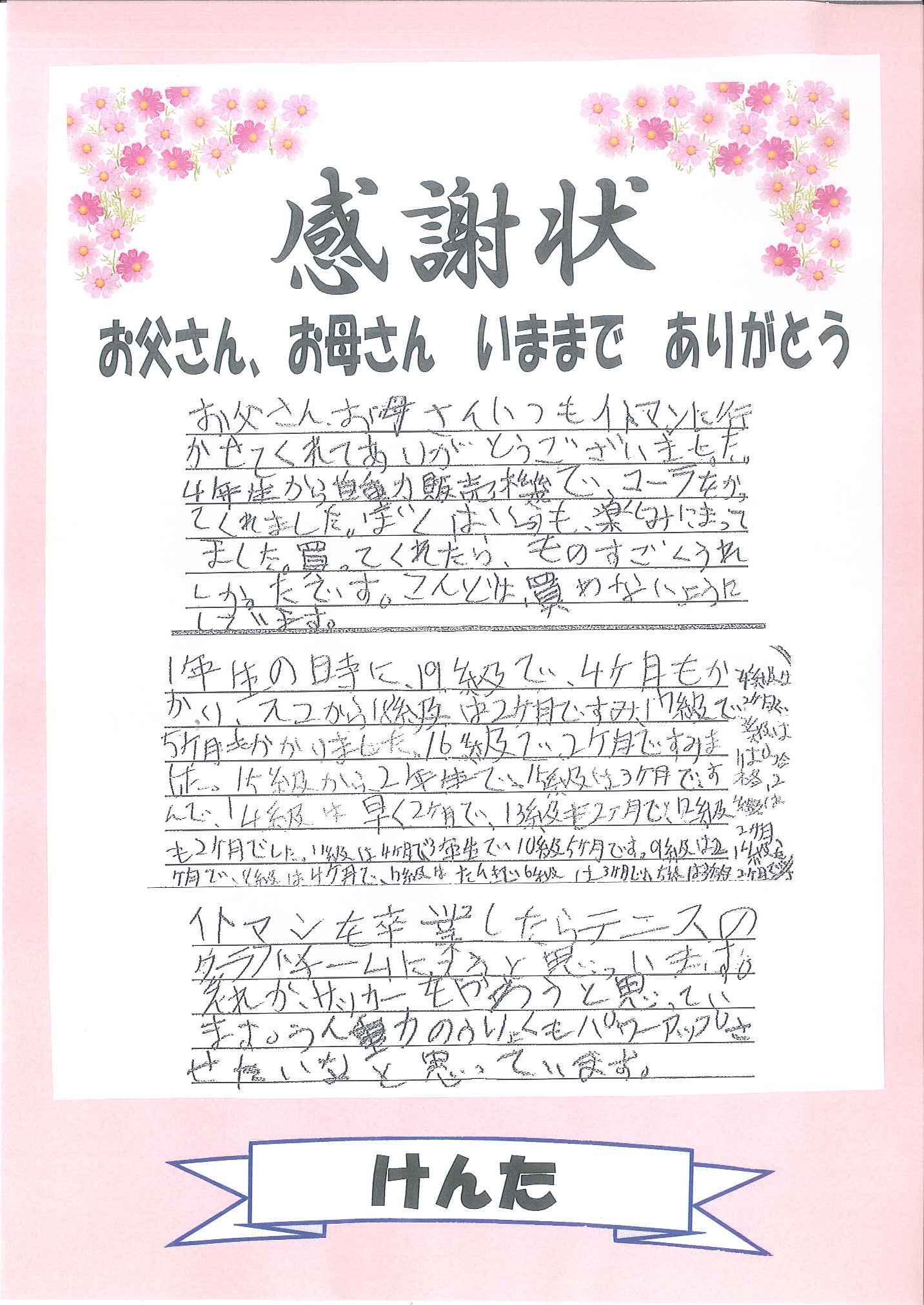けんたの感謝状