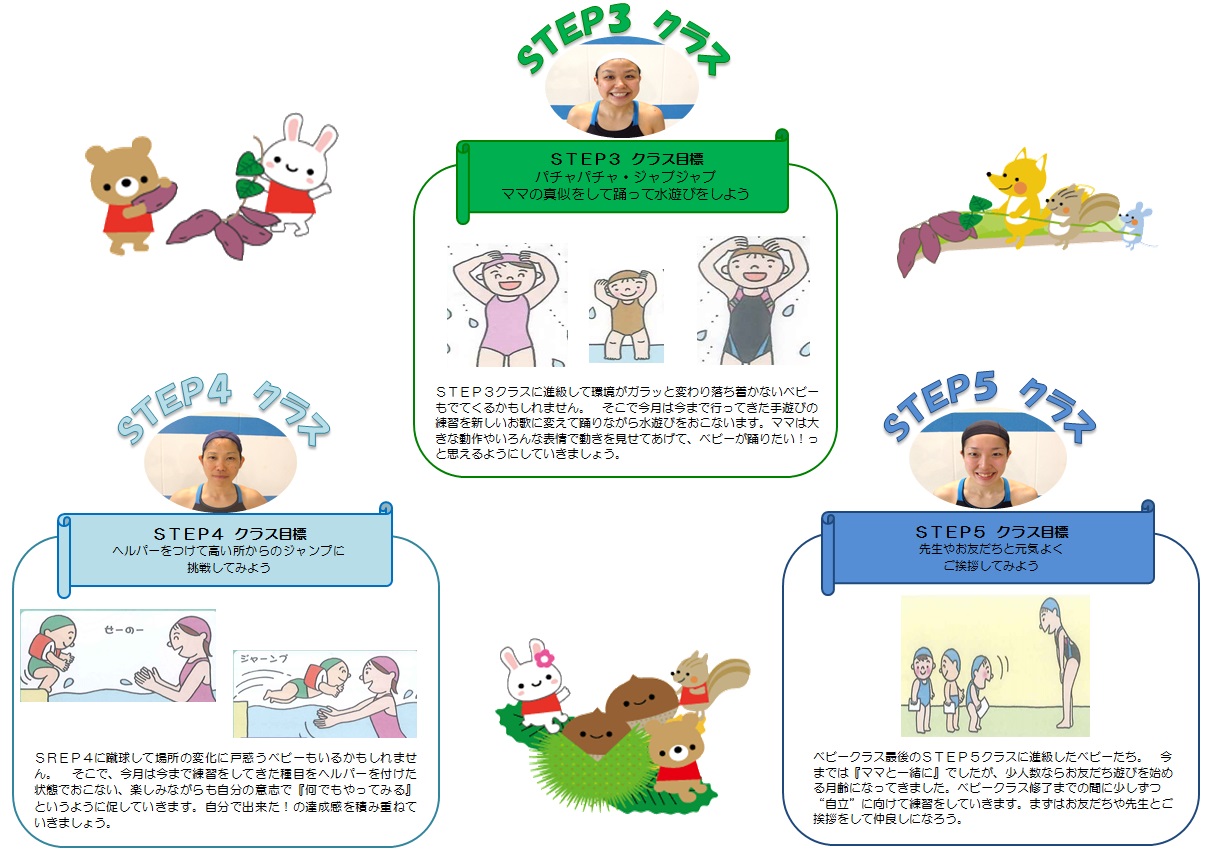 ママはベビーちゃんにプールの環境やお友だちのお話や練習方法などを、まずは見せてあげたり、たくさんお話をしてあげて不安の解消をしてあげるように心がけてあげましょう。