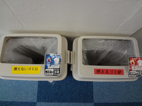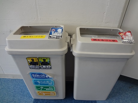 燃えるゴミのゴミ箱には、ペットボトルや空き缶は