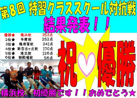 特習スクール対抗戦の結果発表のポスターを2階のトイレの横に貼り出しました