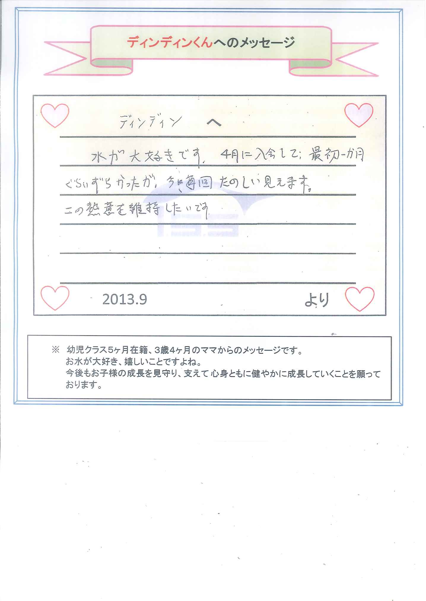 幼児クラス 秋のお子様へのメッセージ第5弾