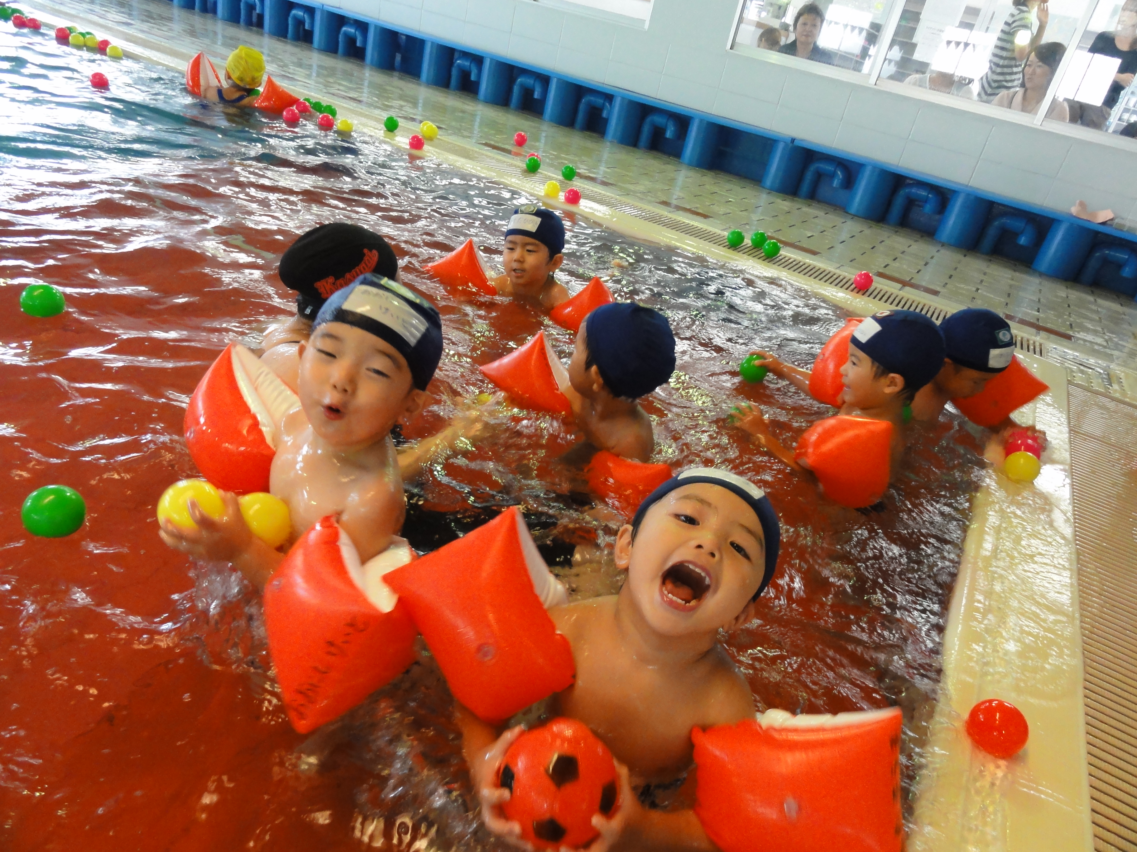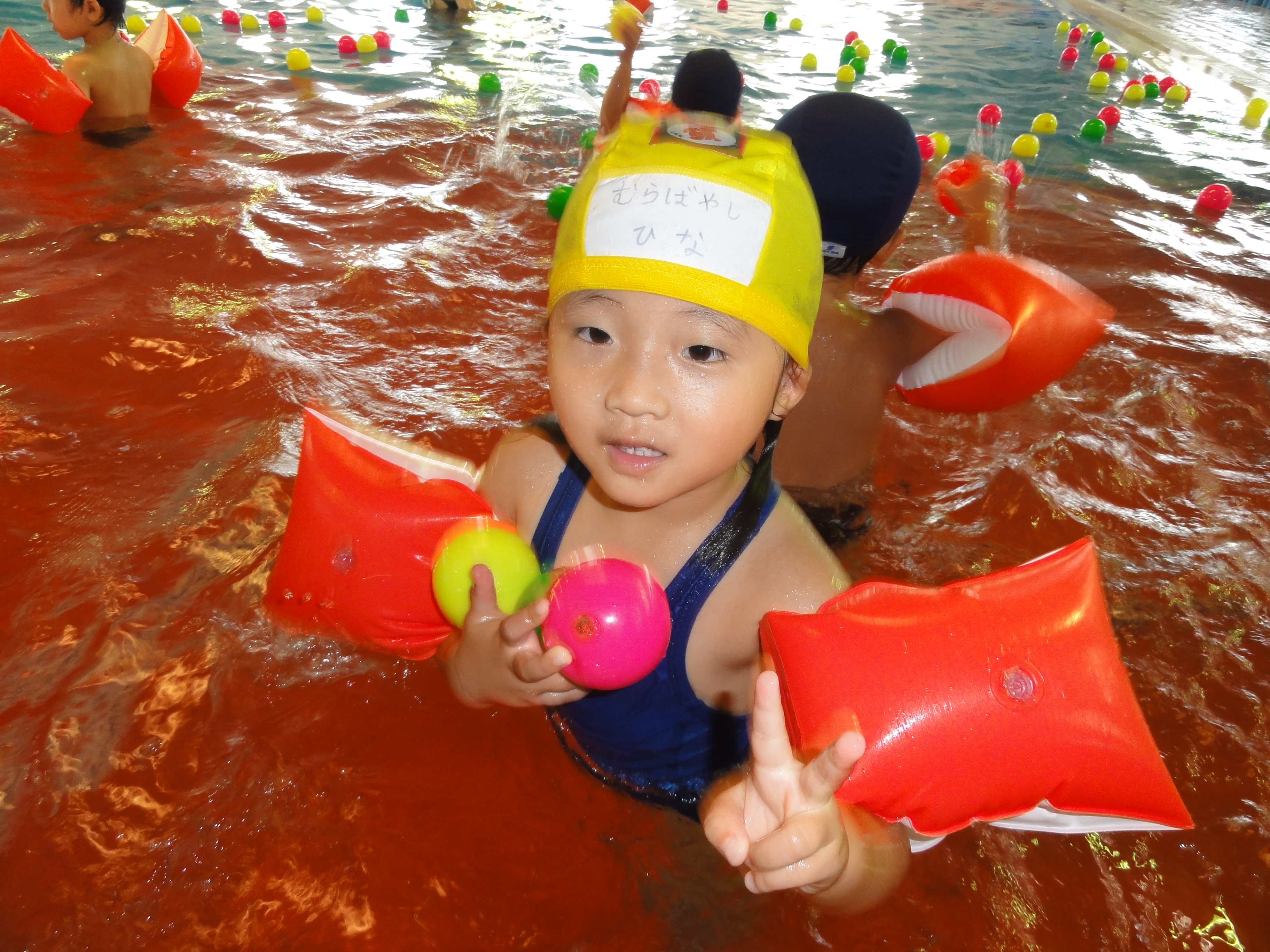 幼児クラスでは水遊びを通して楽しく水慣れをしていきます。