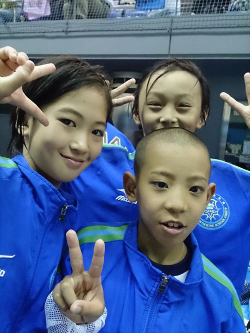 後ろは 谷川 亜華葉 選手 200IM 4位 と 高島 選手