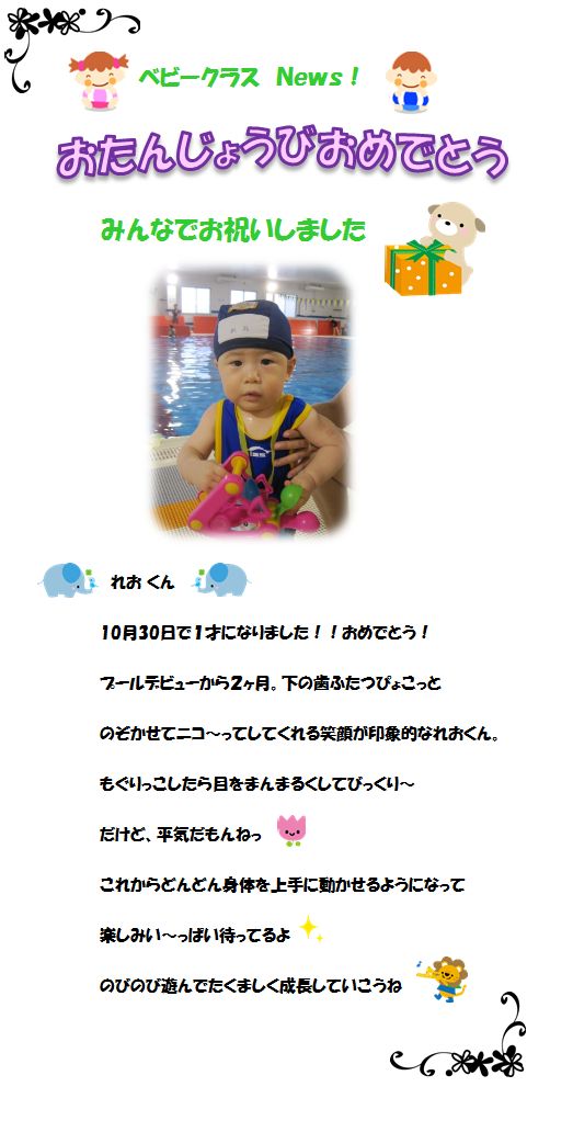 ♪ベビークラス News♪ お誕生日お祝いしました!‘10月30日’