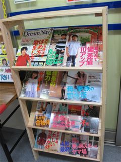 正解は1階フロントの扉を開けて右側すぐにあります!ここに置いてある本棚は、子ども向けの絵本ではなく、大人の方がお子さんのために読む情報誌がたくさん置いてあります。