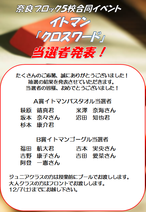 【クロスワード】当選者発表!