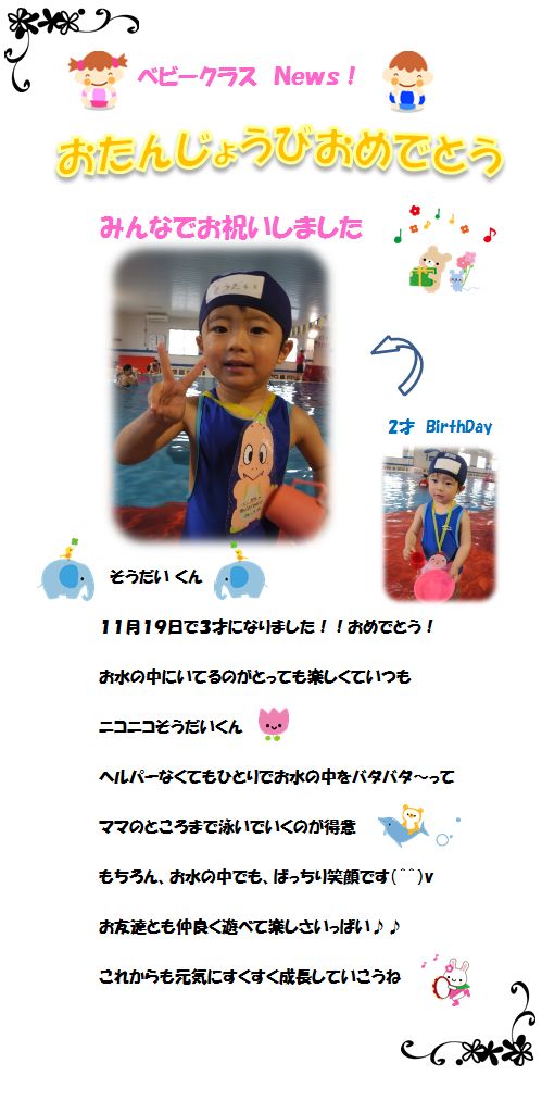 ♪ベビークラス News♪ お誕生日お祝いしました!‘11月19日’