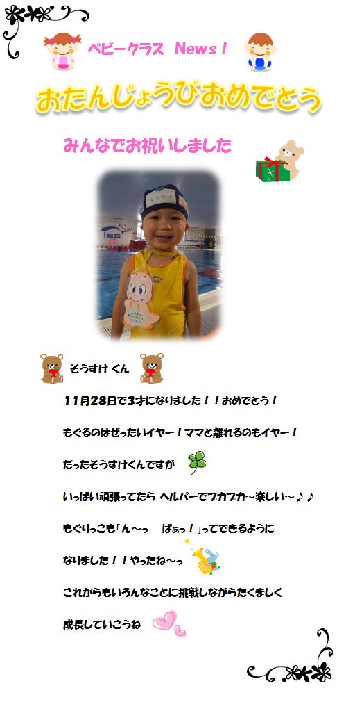♪ベビークラス News♪ お誕生日お祝いしました!‘11月28日’