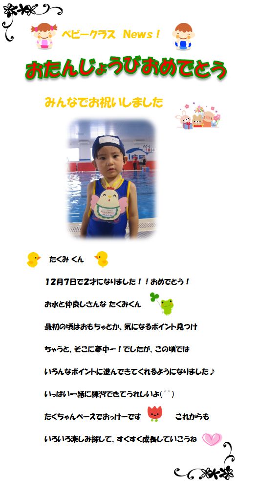 ♪ベビークラス News♪ お誕生日お祝いしました!‘12月7日’