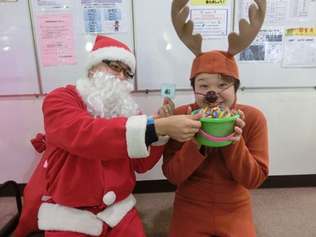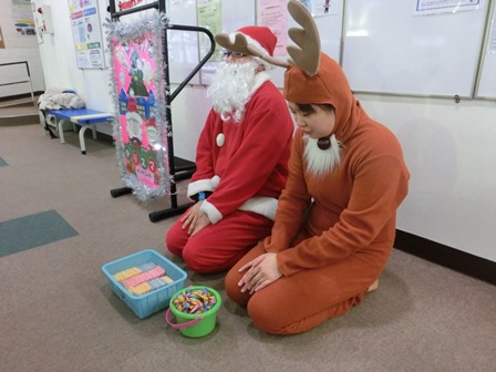 ・・・・ベビーのみんなが授業終わるまで、おとなしく待っているサンタさんとトナカイさん・・・