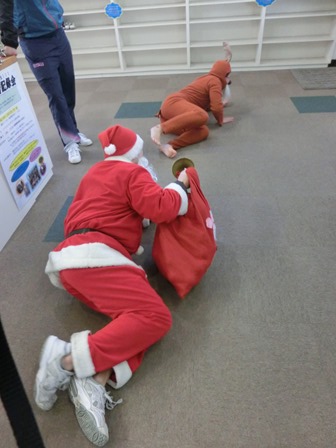 「わー!!サンタさんだー!!」と喜ぶ子や、泣き出してしまう子など様々です。
