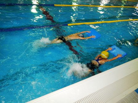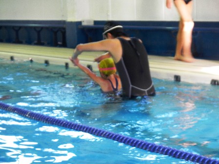 キックや手のまわし方、最後はスイムで泳ぎました