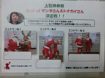 前回からみなさんが気になっている「上石神井校ベストサンタさん・トナカイさん」の