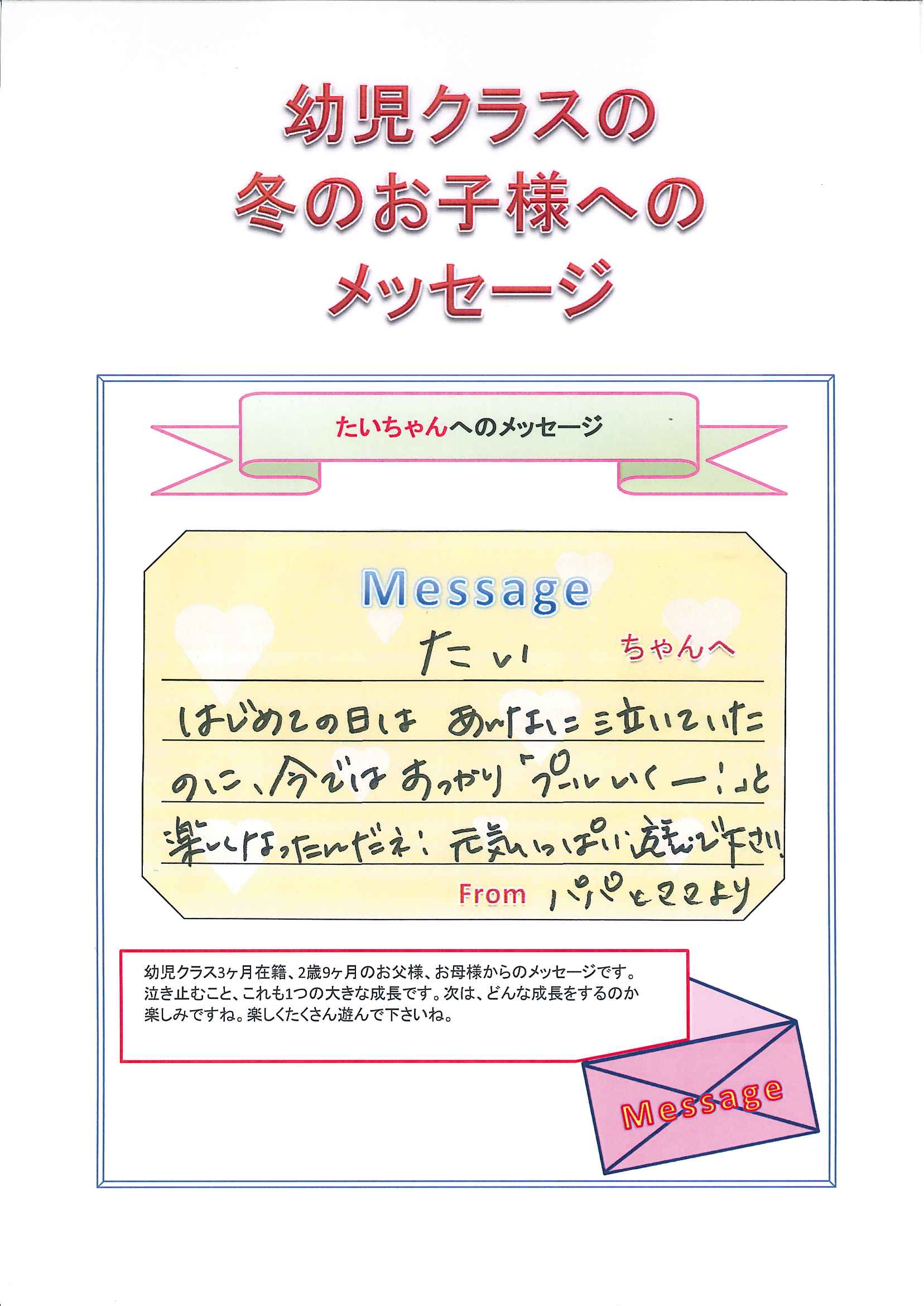 幼児クラス冬のお子様へのメッセージ★第6弾★