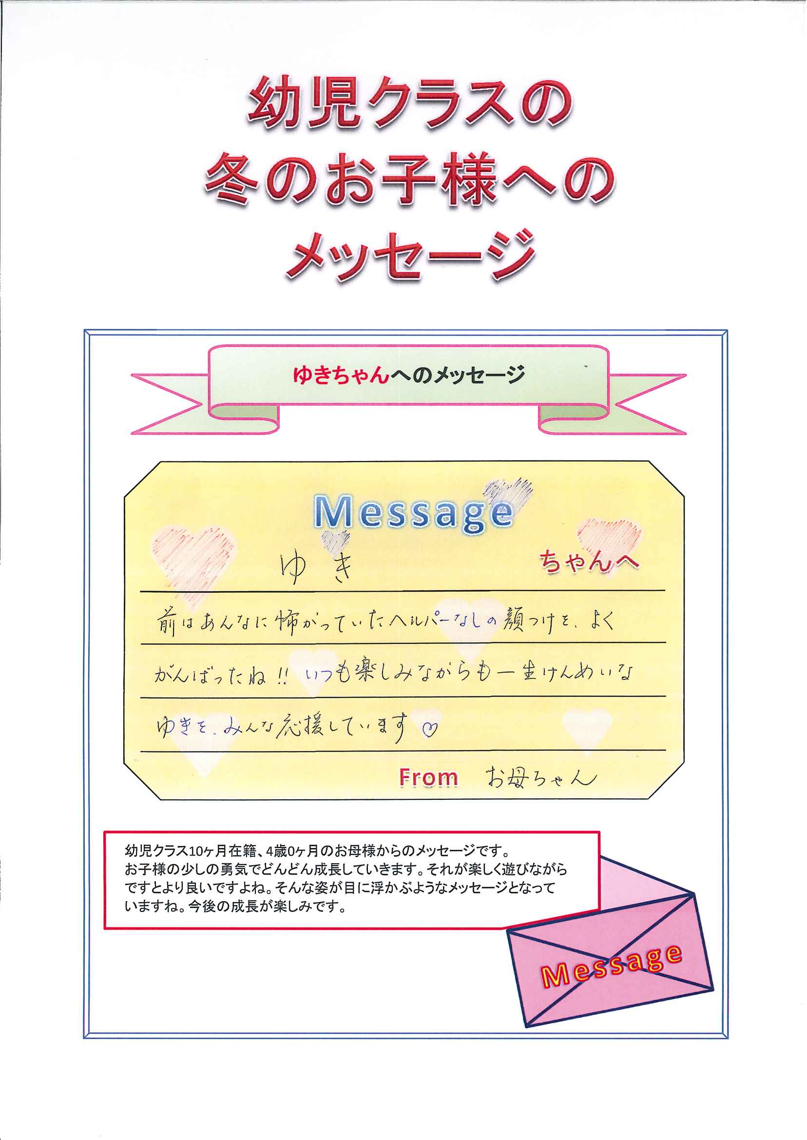 幼児クラス冬のお子様へのメッセージ★第8弾★