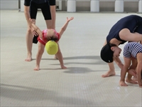 「足の間から ママとお顔を見てご挨拶」前屈体操