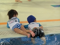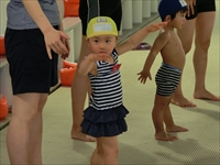 STEP4クラスに進級して3ヶ月。 今では立って先生やママの真似をして腕回しや前後屈も上手にできるようになりますた。