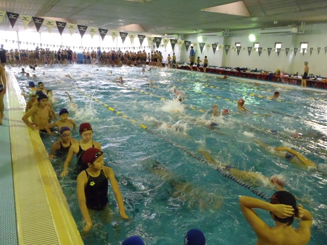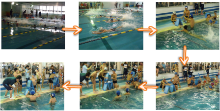 1チーム8名となり、1人25mずつ泳ぐ200mフリーリレー。