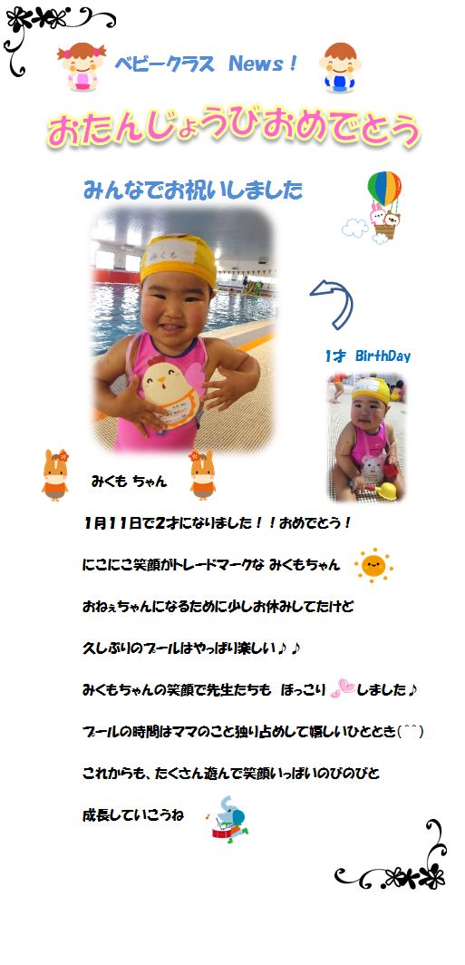 ♪ベビークラスNews♪ お誕生日お祝いしました!‘みくもちゃん’