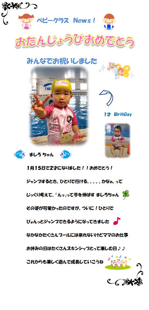♪ベビークラスNews♪ お誕生日お祝いしました!‘ましろちゃん’
