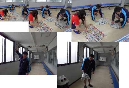 新聞紙を広げて