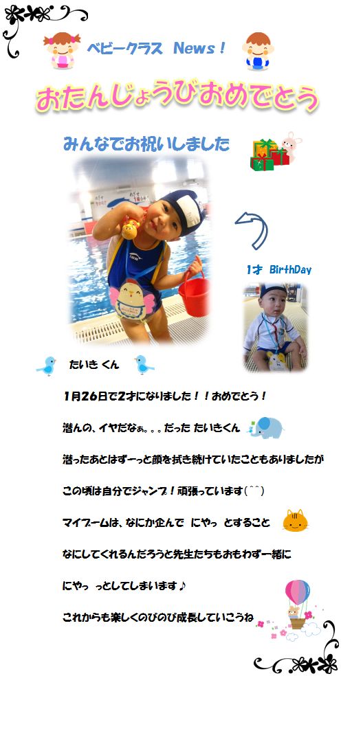 ♪ベビークラス News♪ お誕生日お祝いしました! ‘たいきくん’