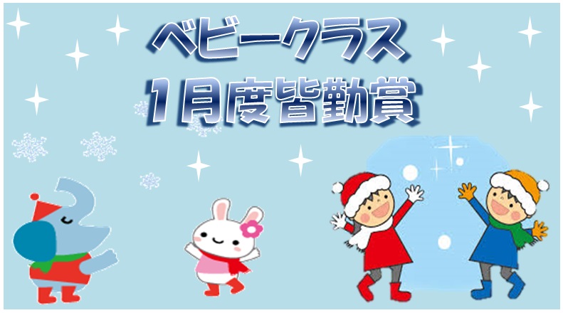 昨年末よりウイルス性胃腸炎の蔓延に続き、1月に入ってインフルエンザの流行と、ベビーのみならず保護者の方の体調管理も大変に時期になりましたが 98名 のベビーちゃんとママが元気に皆勤出席をしていただけました。