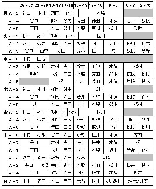 2月コーチ配置表