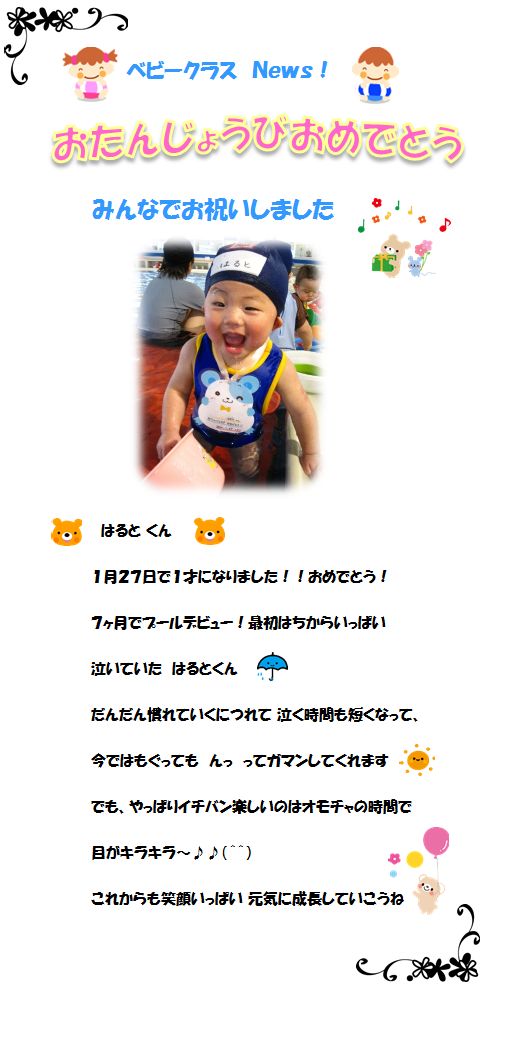 ♪ベビークラス News♪ お誕生日お祝いしました!‘はるとくん’