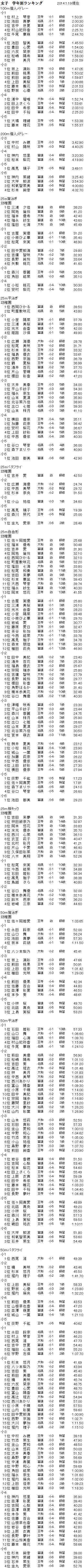 開催されました校内記録会のランキングです