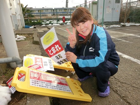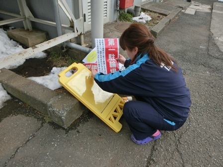 看板の裏側は「安全確認」を促す表示になっています!!(*^_^*)