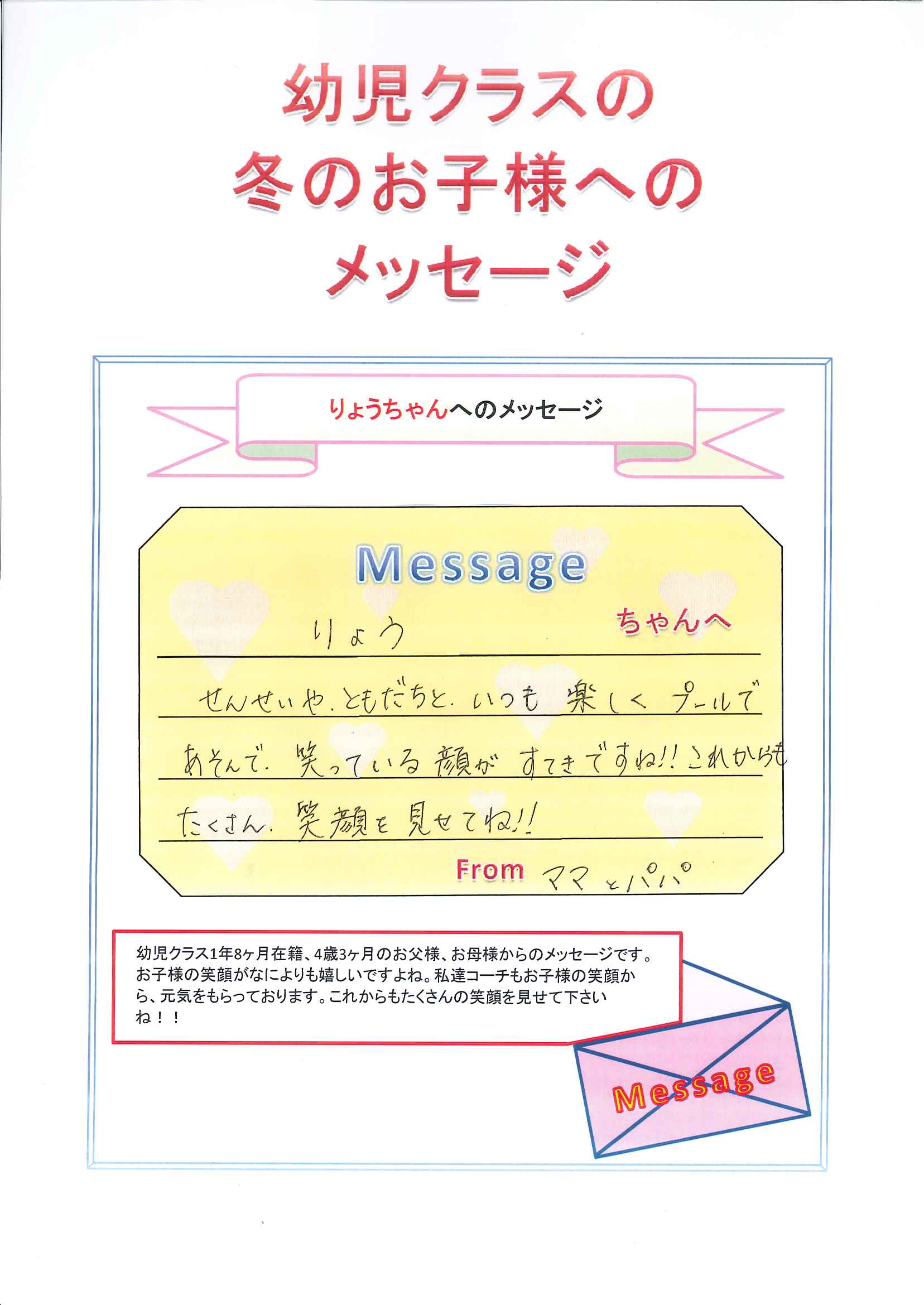 幼児クラス冬のお子様へのメッセージ★第12弾★
